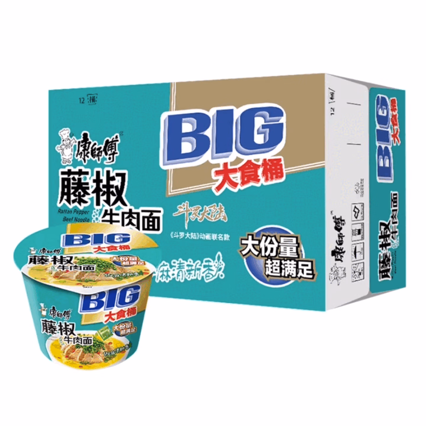 商品名称:康师傅方便面大食桶藤椒牛肉桶面12