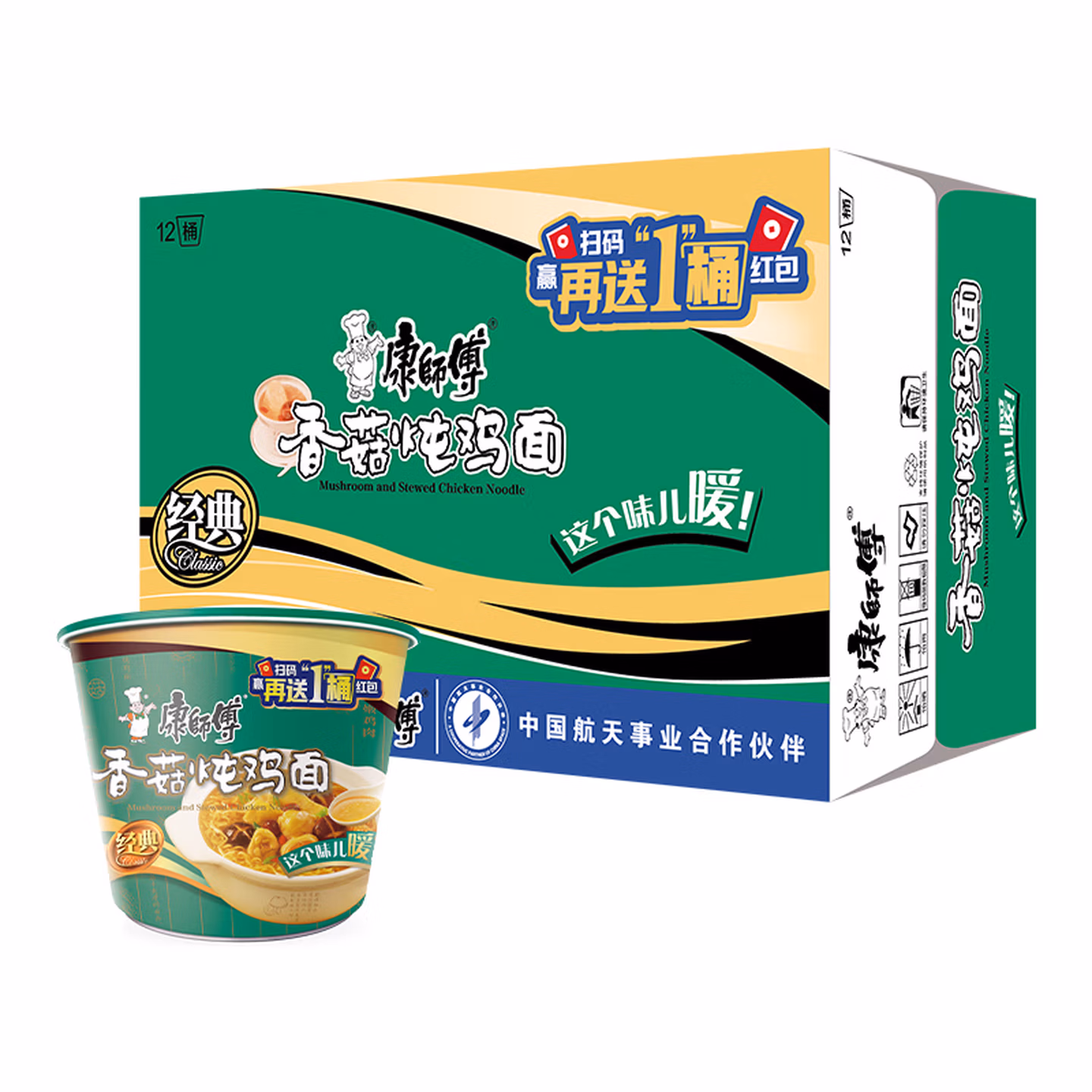 康师傅方便面经典香菇炖鸡桶面12