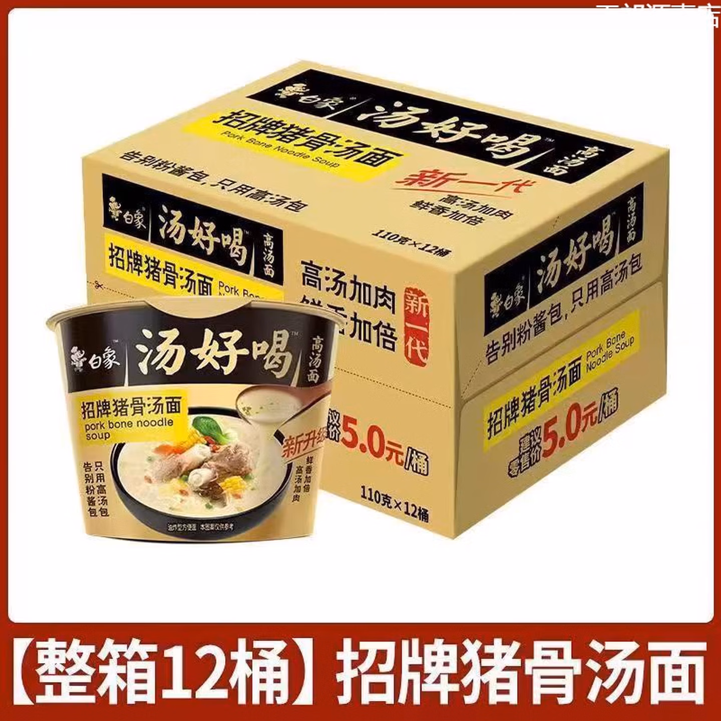 商品名称:112g白象方便面汤好喝招牌猪骨汤面(桶装)12