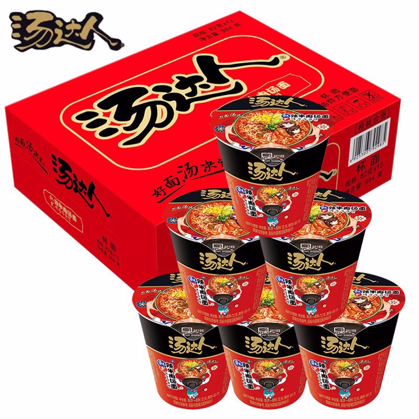 82g统一方便面汤达人辣牛肉汤面桶装12