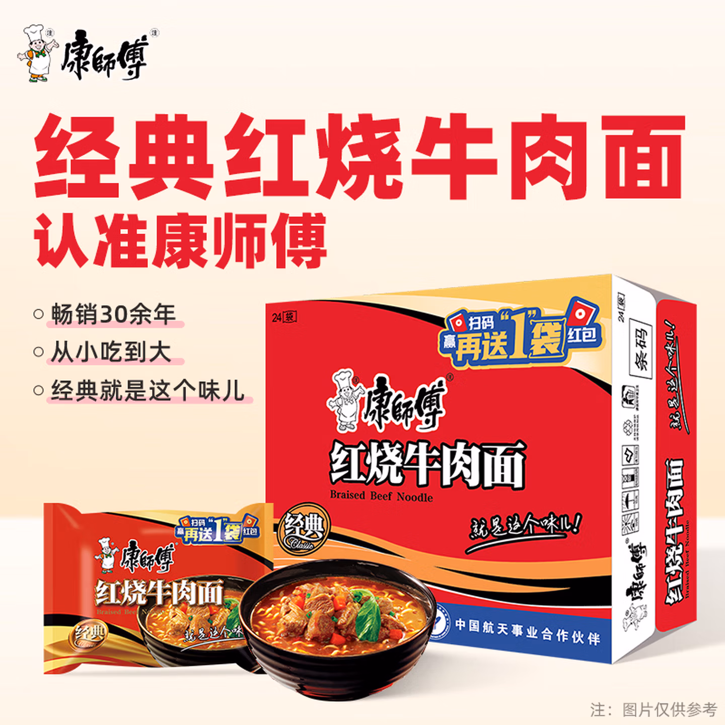 商品名称:康师傅方便面经典红烧牛肉袋面*24