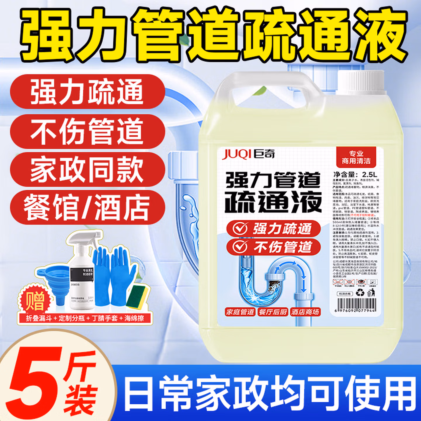 商品名称:巨奇严选管道疏通剂2.5L强力溶解下水道疏通剂厨房厕所马桶疏通除臭剂