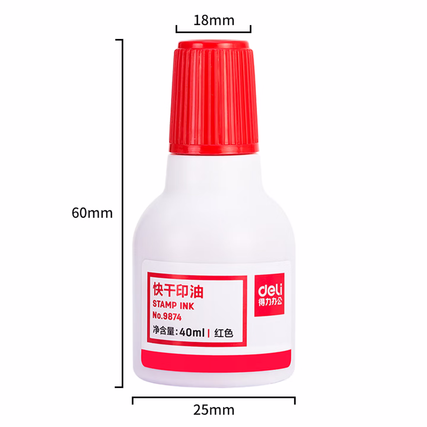 商品名称:得力9874快干清洁印泥油(红)(瓶)